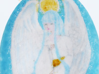 パライバトルマリンの原石の色彩の美しさに魅了され、イメージして描いたパライバトルマリンエンジェルの七宝絵画です。