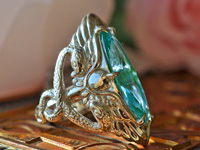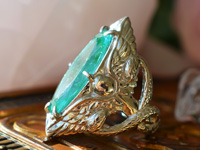 細長いカットのお石を活かし、両サイドにヘルメス神の持つ杖である「カドゥケウス」を装飾させていただきました。