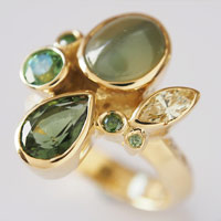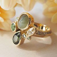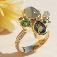 Gallery No. No.0012(リフォーム) 石の種類 キャッツアイ,イエローダイヤモンド,グリーントルマリン,モルダバイト,グリーンダイヤモンド 素材 K18 Yellow Gold