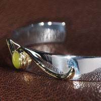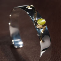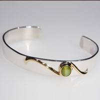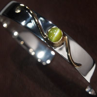 クリソベリルキャッツアイ ゴールドシルバーバングル