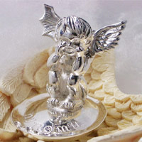 お子さんの誕生を記念して、人間の持つ善と悪のパワーを上手に使いこなすことを意図したエンジェル型のジュエリートレイとネックレスの一体型装飾品です。