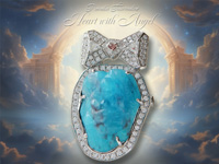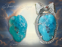 透明感の高い大きなパライバトルマリンの原石をハートを抱く天使に磨き上げ、プラチナ製のネックレスにお仕立ていたしました。
