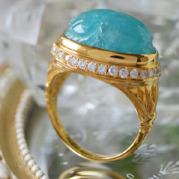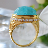 パライバトルマリンスカラベカービングK18ロータスダイヤモンドリング