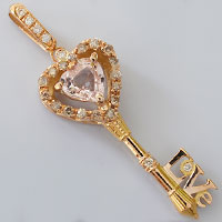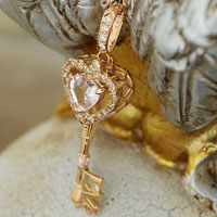 ピンクサファイアLoveハートキー K18ピンクゴールドペンダント