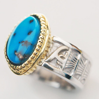 アメリカ産のターコイズの中でも人気の高いビズビー鉱山産のハイグレードな品質のナチュラルターコイズを使ったゴールドリングです。