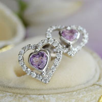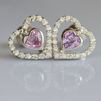 当店の通常商品であるモルガナイト ダイヤモンド ハートピアスをパープルサファイアでお作りさせていただきました。
