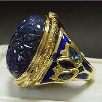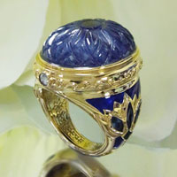 カービングサファイア 七宝ロータスリング