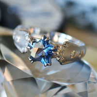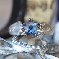 ふっくらとした星形にカットされた上品な印象のブルースピネルをお求めいただきましてオーダーメイドでジュエリーにお仕立いたしました。