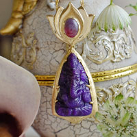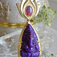 上質なスギライトを使ったガネーシャ神ジュエリー