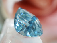ブルージルコンは二重屈折という特徴を持っており、バックファセットが二重に見えるのも特徴の一つです。ブルージルコンは、繁栄と成功の道を歩めるように、私達のエネルギーを調整してくれます。