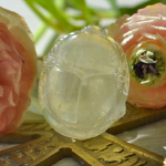 透明度の高い美しいリビアングラスに、古代エジプトの再生の象徴であるスカラベと、生命の紋章であるアンクを彫り込んだ当店オリジナルのスペシャルカービングです。