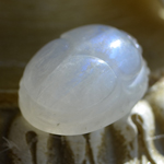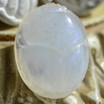 ブルーやオレンジの光があふれ出すブルームーンストーンをスカラベカービングに仕上げました。