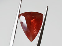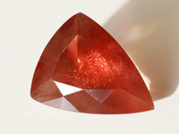 レッドカラーの美しいオレゴンサンストーンのトリリアントカット のご紹介です。