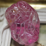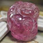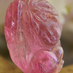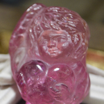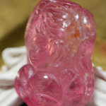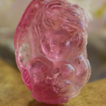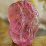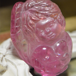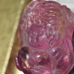 発色の大変美しいピンクトルマリンに、ハートを抱く姿のかわいらしいエンジェルをカービングしました。