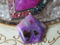 五角形(ペンタゴン)の形をしたマーブル模様の美しいスギライトのカボションをご紹介します。