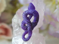 石の種類 スギライト 産地情報 南アフリカ 重量 6.29ct(1.25g) サイズ 27.5×11.7×5.8mm クラリティ 不透明 形状 スネークカービング エンハンスメント なし ジェルスギライトスネークカービング