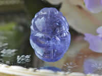 セレスチャルブルーカラーの美しい、透明感の高いタンザナイトを古代エジプトの再生の紋章であるスカラベにカービングいたしました。