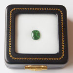 深く鮮やかな緑色が大変美しく、照りもカットも良好です。イーダーオーバシュタイン(ドイツ)のお店でカットされたお石です。