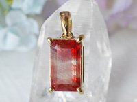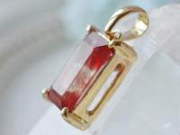 レッドカラーとクリアーが5層になっていて、中央にはストロベリークォーツなどの内包物であるゲーサイトに似た赤いインクルージョンが確認できます。太陽のまぶしい光のように強大なポジティブさを感じるこちらのストーン。