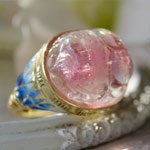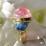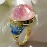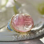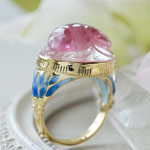 ピンクトルマリンスカラベ七宝ブルーロータスK18リング