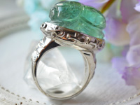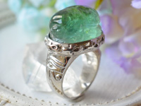 ブルーグリーントルマリンスカラベカービングシルバーリング