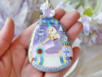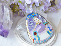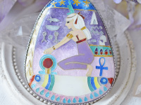 ネフェルタリ王妃のお墓の壁画に描かれている、白髪でシェヌ(永遠を表す紋章)を手にしたイシス女神が大好きで、今回七宝ジュエリーを創作することにいたしました。