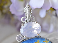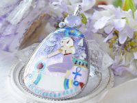 ジュエリー枠:SILVER925(ロジウムコーティング)重量 46.0g ジュエリーサイズ 87.0×51.4×8.4mm チェーン 付属無し イシス女神スコロライトとシルキースピネルの七宝ペンダント