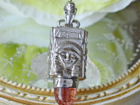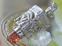 石の種類 ファイヤークォーツ(マダガスカル産)5.63ct 9.4×9.9×8.3mm 素材 SILVER925(ロジウムコーティング) 重量 20.9g ジュエリーサイズ 48.6×16.9×16.7mm チェーン 付属無し ファイヤークォーツハトホル女神ペンジュラム型ペンダント