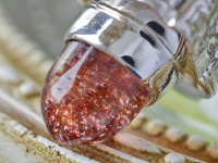 全体的にレピドクロサイトが美しく内包されている為、赤色の発色が美しく、キラキラとした赤色の輝きを楽しんでいただけます。