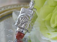 エネルギーを上げたい方にとてもオススメのストーンであるファイヤークォーツと、愛の存在であるハトホル女神が組み合わさることで、より良いエネルギーのジュエリーとして誕生しました。ハトホル女神の優しい微笑みを胸元で感じていただくことで、内面に穏やかで平和なエネルギーが広がります。