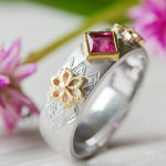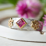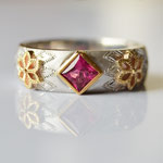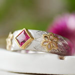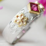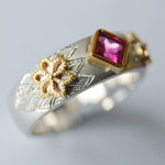 石の種類 ピンクトルマリン 天然石詳細 ピンクトルマリン(4mm) 素材 K18 White Golod/K18 Yellow Gold 重量 約8.0g(リングサイズによって変わります) ジュエリーサイズ リング幅:6.0mm リング可能サイズ 8号~16号 ピンクトルマリン K18コンビネーションリング グロリアス