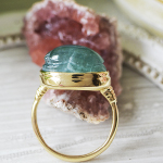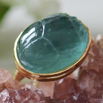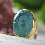 透明感の高い色彩の美しいグランディディエライトのスカラベを古代風リングに仕上げました。