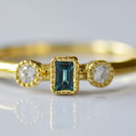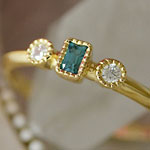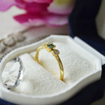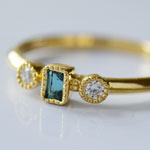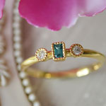 石の種類 グランディディエライト 天然石詳細 グランディディエライト(0.103ct)2.3×3.3mm(ステップカット)、メレダイヤ(0.07ct) 素材 K18 Yellow Gold 重量 2.043g ジュエリーサイズ リング幅:4mm リングサイズ 12号 グランディディエライト0.103ctダイヤモンドリング