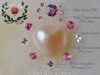 そのハートのマベパールをかわいいリボンで包み込んだかわいいジュエリーです。