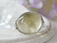 リビアングラスのカボションの底辺には、原石そのままの窪みを残して磨いております。