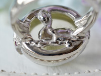 石の種類 リビアングラス,ルビー,クリソベリル 産地情報 エジプト(リビアングラス以外のストーンの産地は不明) 重量 11.98ct サイズ 15.6×12.9×9.4mm クラリティ クリストバライト 形状 カボション エンハンスメント なし(ルビーは加熱) 素材 Silver925 重量 7.26g リングサイズ 10号 リング幅 14.8mm コーティング ロジウムコーティング リビアングラス親子の恐竜とスターモチーフシルバーリング