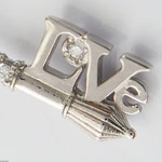 ハートカットの美しい誕生石をハートとLoveの文字で装飾した鍵ジュエリーにお仕立しお届けします。
