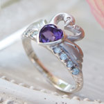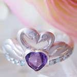 生涯を共にするパートナーを呼び込みたい人にもオススメです。アメジストのハートカットの煌めきと、水面をイメージしてセッティングしているアクアマリンのコントラストが爽やかな印象を与えます。