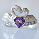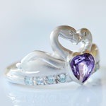 愛を誓った白鳥を、ハートカットのアメジストとアクアマリンを組み合わせてラブリーなジュエリーに仕立てました。