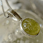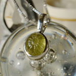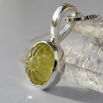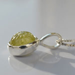 黄色味の強いマリガーネットに、マーガレットのようなお花のカービングを彫り込み、シルバー製のチャームにお仕立しました。