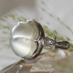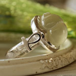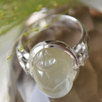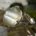 シラーの大変美しいムーンストーンに、スカラベをカービングした個性的なシルバーリングです。