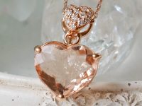 ピーチカラーがかわいらしいぷっくりモルガナイトのハートシェイプをラブリーなジュエリーに仕上げました。