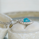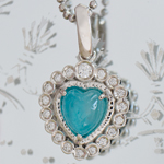 非加熱パライバトルマリンのハートカボションをプラチナとダイヤモンドでかわいくクールなネックレスに仕上げました。