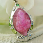 石の種類 ピンクサファイアガネーシャ(22.94ct)22.5×15mm、グリーンガーネット2.7mm、ペリドットマーキスカット6×3mm 素材 SILVER925(ロジウムメッキ処理) 重量 10.8g ジュエリーサイズ 45.0×20.1×10.8mm チェーン 付属有り ピンクガネーシャサファイアシルバーペンダント