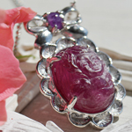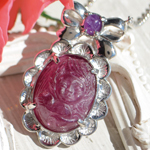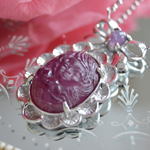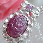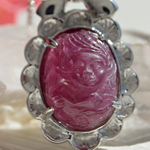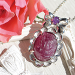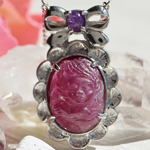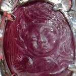 色濃いピンクトルマリン(マゼンタトルマリン)に、ハートを抱く天使を彫り込みました。