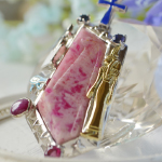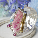 そのピンクスギライトの周りに、ブルーサファイア,アイオライト,スタールビー,ピンクトルマリンがエネルギーを更に高めるために配置されています。