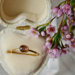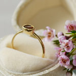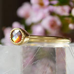 石の種類 レインボーガーネット(0.634ct) 素材 K18 Yellow Gold 重量 1.1g ジュエリーサイズ リング幅:1.5mm リングサイズ 6.5号 レインボーガーネット K18イエローゴールドリング
