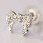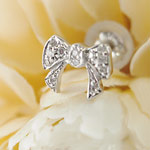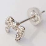 耳元に小さな可愛らしさを添える、リボンダイヤモンドピアスです。
