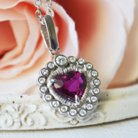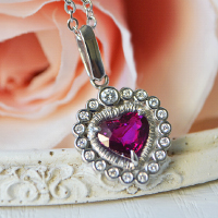 ルビーハートシェイプダイヤモンドプラチナペンダント