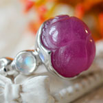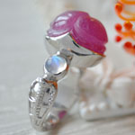 石の種類 ルビー/レインボームーンストーン 天然石詳細 含侵ルビー(18.84ct)13.9×12mm/レインボームーンストーン4.5mm 素材 SILVER925 重量 8.73g ジュエリーサイズ 15mm(リング幅) リングサイズ 11号 ルビースカラベ レインボームーンストーンコブラリング